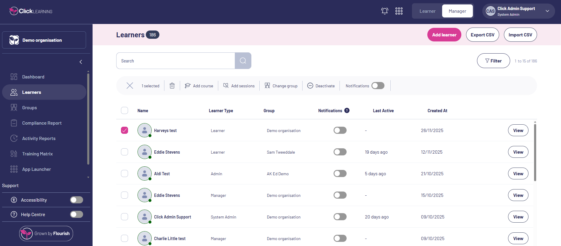 Go to the Manager Dashboard and select the Learners tab on the left-hand side.